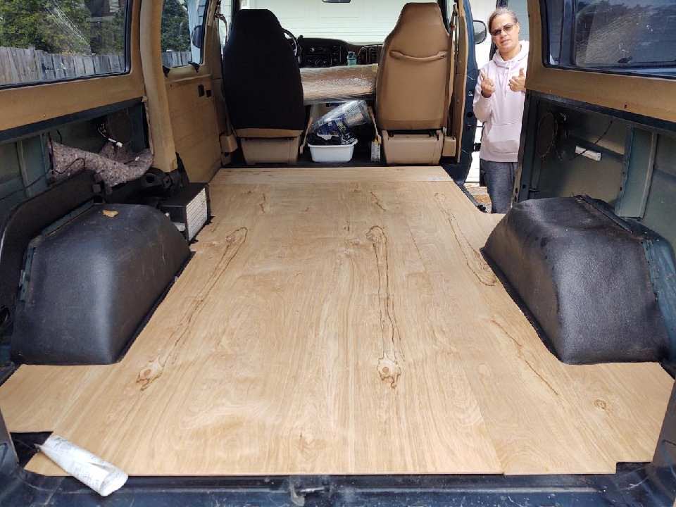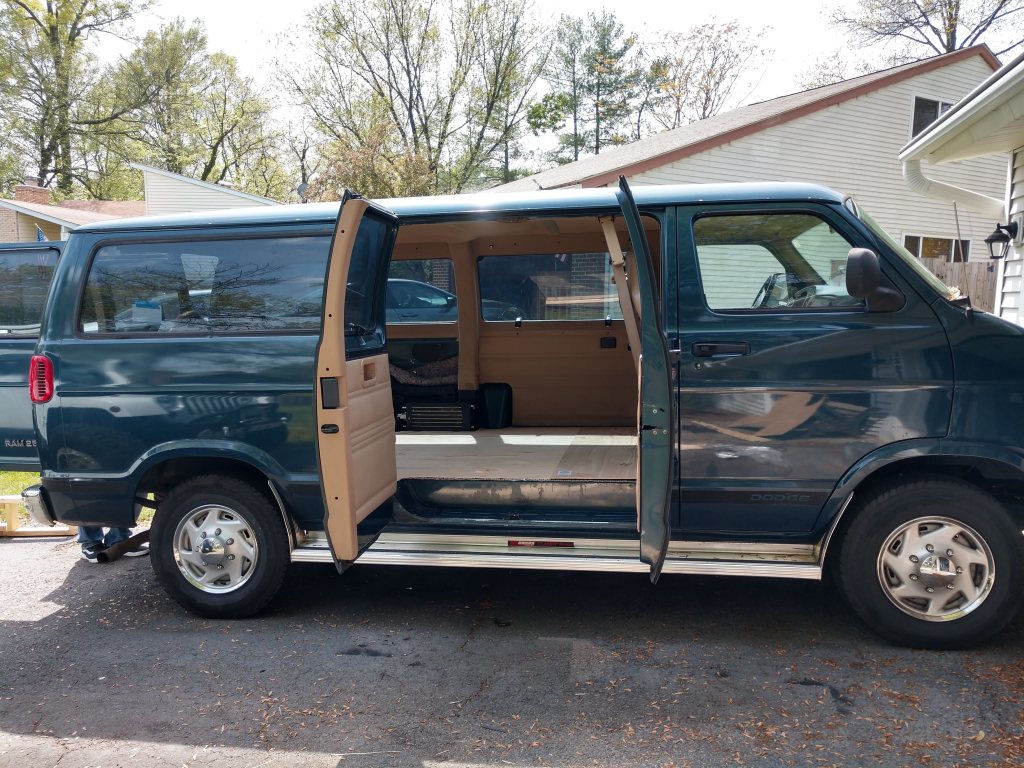 We started with a 2000 12-passenger Dodge Ram Van 2500. After taking the seats out, we insulated the floor and built upwards from there.