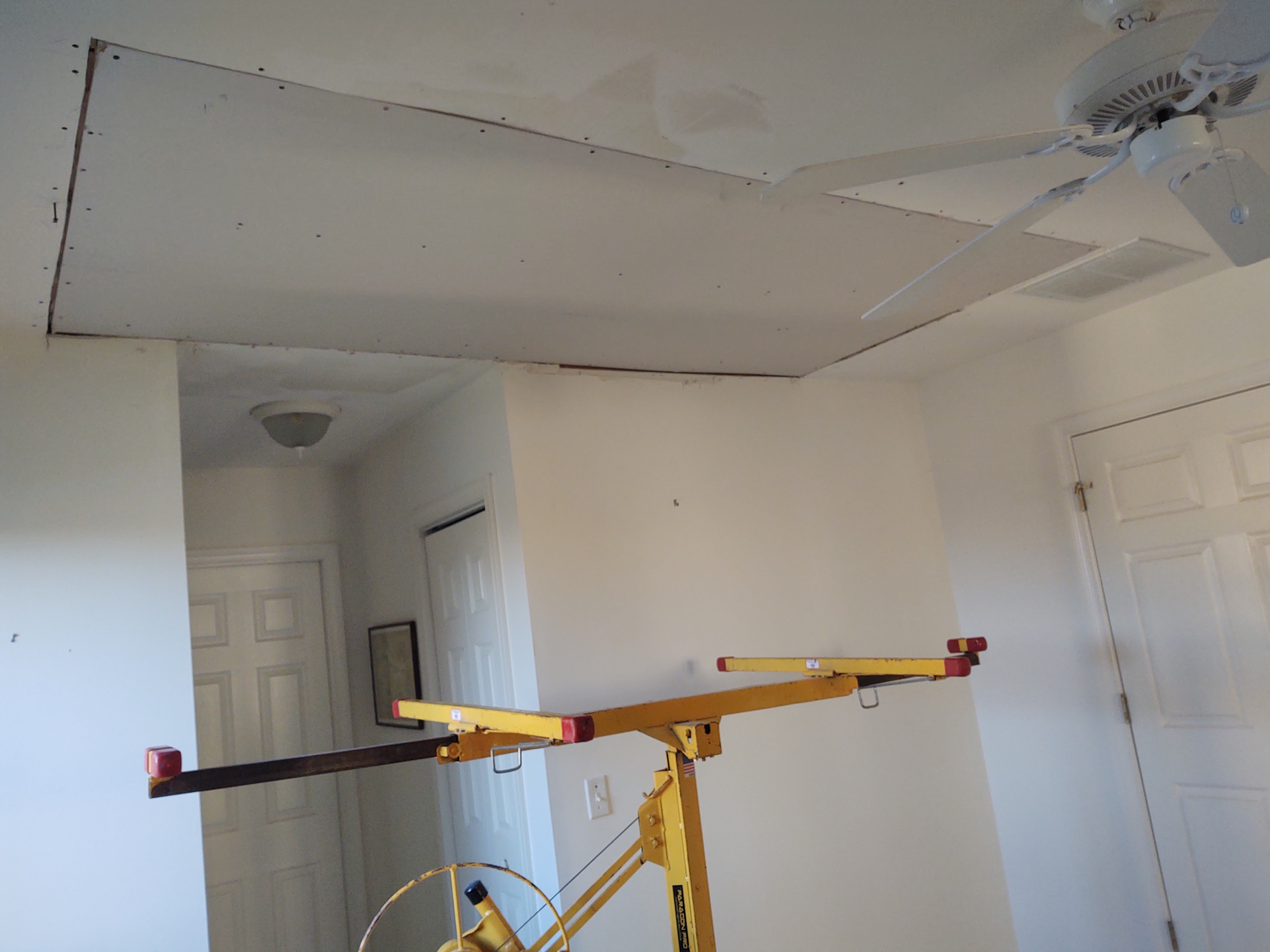 Then after taping, blocking, skimming, and sanding, the ceiling was ready for a fresh coat of paint.