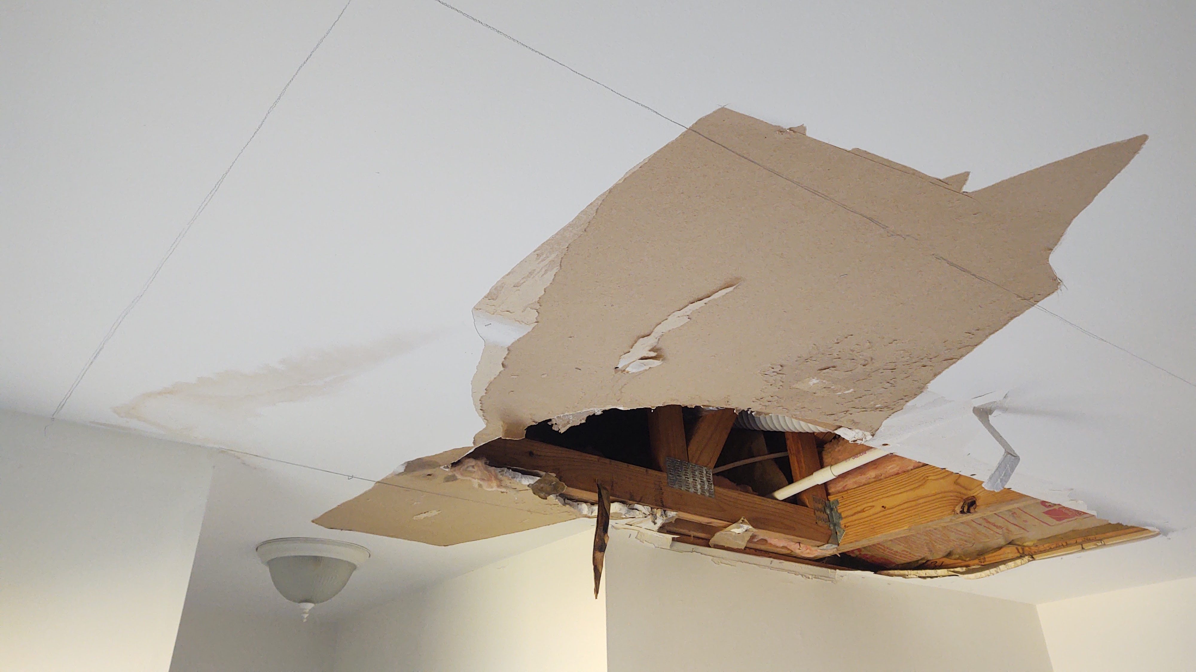 One of our clients had a terrible problem. The HVAC unit in their attic leaked and, unfortunately, caved in the ceiling causing a bit of water damage.