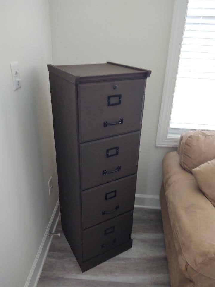 Our client wanted to reuse their sturdy file cabinet while giving it a new look for their new space.