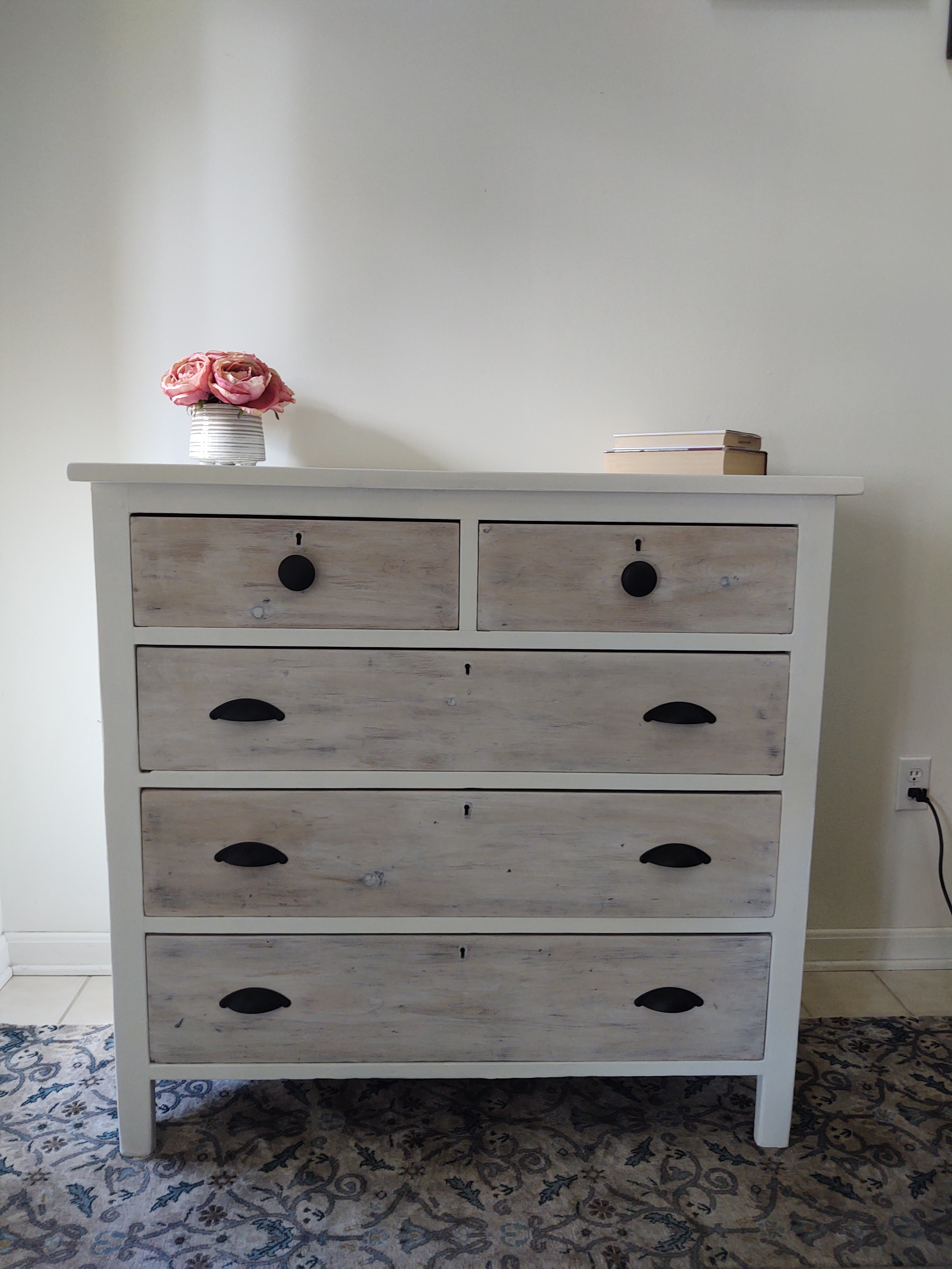 For this dresser, we used a white washing affect on the drawers and updated the knobs to give it a modern look.